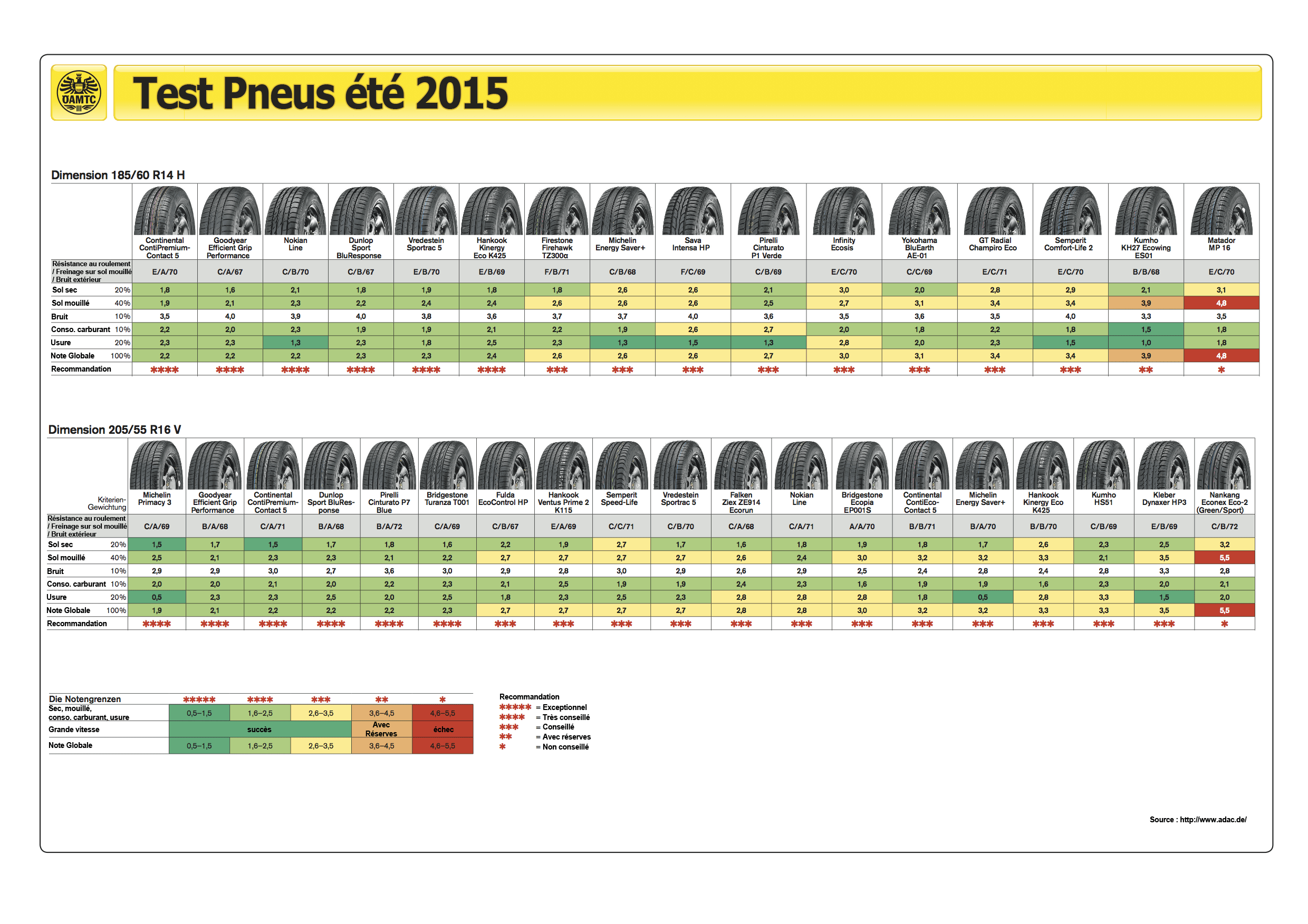 Le valutazioni riportate nell'etichetta in alcuni casi sono contraddette dai risultati di test svolti da organismi indipendenti, ad esempio dall'automobile club tedesco (ADAC), svizzero (TCS) o austriaco (ÉAMTC). Sembra infatti che i marchi 'premium' siano più affidabili, mentre quelli meno noti forniscano dati non sempre credibili. Il club automobilistico tedesco ADAC ha svolto alcuni test sulle performance degli pneumatici e i risultati non collimavano sempre con quelli presenti sull'etichetta europea. Nel test in cui ha esaminato le performance sul bagnato degli pneumatici invernali di dimensioni 165/70 R14T, lo spazio di frenata del Continental WinterContact TS850 era di 36,3 m, quello del Mentor M200 era di 49,6 m, eppure quest'ultimo aveva in etichetta C, come il Continental, invece di F. Lo stesso si è verificato nella misura 205/55 R16H in cui lo spazio di decelerazione dell'Alpin 5 di Michelin da 80 a 20 km/h era di 36,2 m, mentre quello dell'Avon Ice Touring ST era di 44,5 m: nelle etichette avrebbe dovuto figurare rispettivamente la lettera B e la lettera E, invece in entrambe figurava la B. Nel test sugli pneumatici estivi 2015 della dimensione 185/60 R 14 H, il Kumho Ecowing era quindicesimo su sedici pneumatici, nonostante le due B nell'etichetta europea, e lo pneumatico premium Bridgestone Ecopia EP001S di dimensioni 205/55 R 16 V, con A e A per consumo di carburante e frenata su bagnato, aveva una tenuta di strada del tutto insufficiente