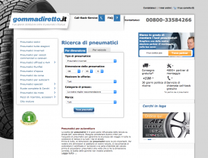Nella sua home page di Gomma Diretto gli utenti hanno a disposizione tutte le informazioni necessarie per interagire con il sito in maniera facile e veloce. Sulla sinistra compare l'elenco delle tipologie di pneumatici disponibili, al centro il pannello di ricerca, in alto i contatti per ricevere assistenza mentre sulla destra vengono evidenziate alcune condizioni in merito agli acquisti online.