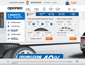 La home page di Oponeo, altra azienda importante attiva nel settore della vendita di pneumatici online, consente di effettuare una ricerca in maniera semplice. Basta soltanto specificare alcune informazioni relative al proprio veicolo. In alto ci sono i recapiti per mettersi in contatto con lo staff di Oponeo e ricevere assistenza. Oponeo garantisce la consegna gratuita degli pneumatici da spedire lungo tutta la penisola italiana. Per usufruire della consegna gratuita basta acquistare anche un solo pneumatico. Gli pneumatici acquistati potranno essere montati presso il centro di montaggio Oponeo più vicino alla propria abitazione.