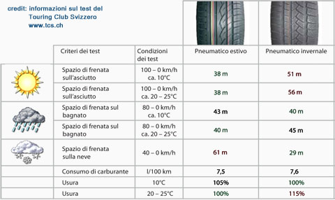 - il primo dato è relativo alla sicurezza. Infatti, considerati i maggiori spazi di frenata, conviene montare pneumatici adeguati alla stagione.